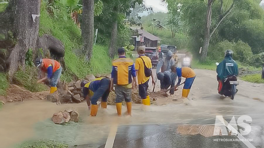 SUKABUMI – Hujan deras berintensitas tinggi yang mengguyur wilayah Kecamatan Nyalindung, Kabupaten Sukabumi, Selasa (14/4), memicu bencana banjir bandang disertai longsor. Akibatnya, dua titik jalur provinsi Sukabumi–Sagaranten sempat tertutup material lumpur dan bebatuan.