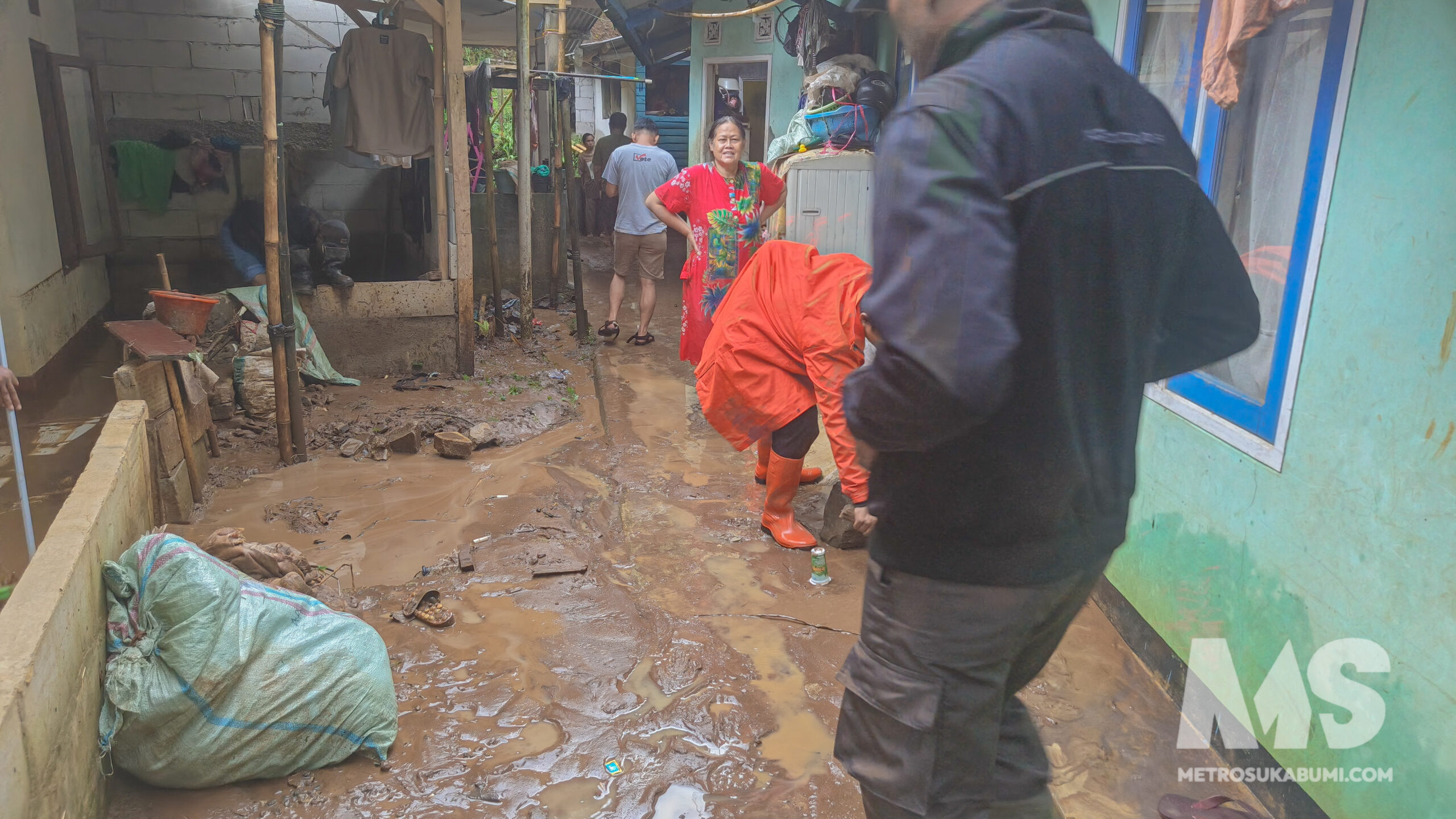 Beruntung, tidak ada korban jiwa maupun warga yang harus mengungsi. Meski begitu, puluhan kepala keluarga harus berjibaku membersihkan lumpur yang terbawa banjir ke dalam rumah.