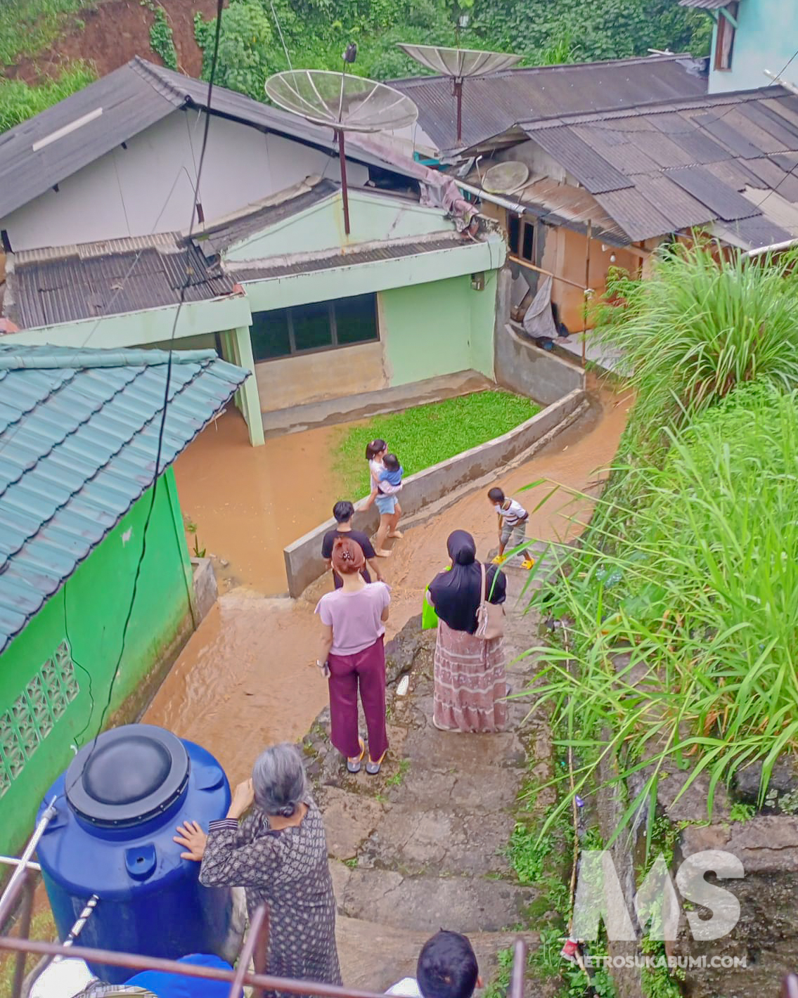 METROSUKABUMI.com – Banjir kembali merendam permukiman warga di Kampung Panagan, RT 03/RW 02, Desa Pamuruyan, Kecamatan Cibadak, Kamis (16/4) sore. Luapan sungai akibat hujan deras membuat sedikitnya 12 kepala keluarga (KK) atau 35 jiwa terdampak.