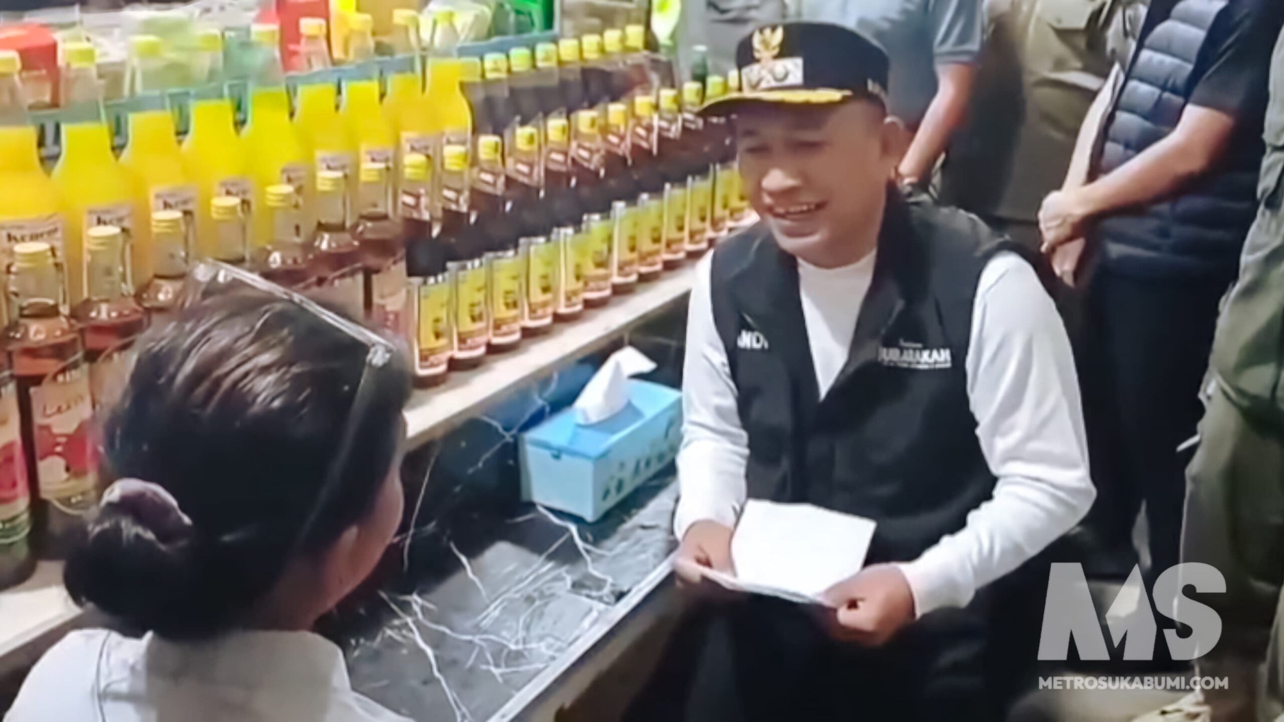 Wabup sukabumi Andreas SE saat memberikan himbauan kepada pemilik warung kamu di Palabuhanratu. Foto : Istimewa