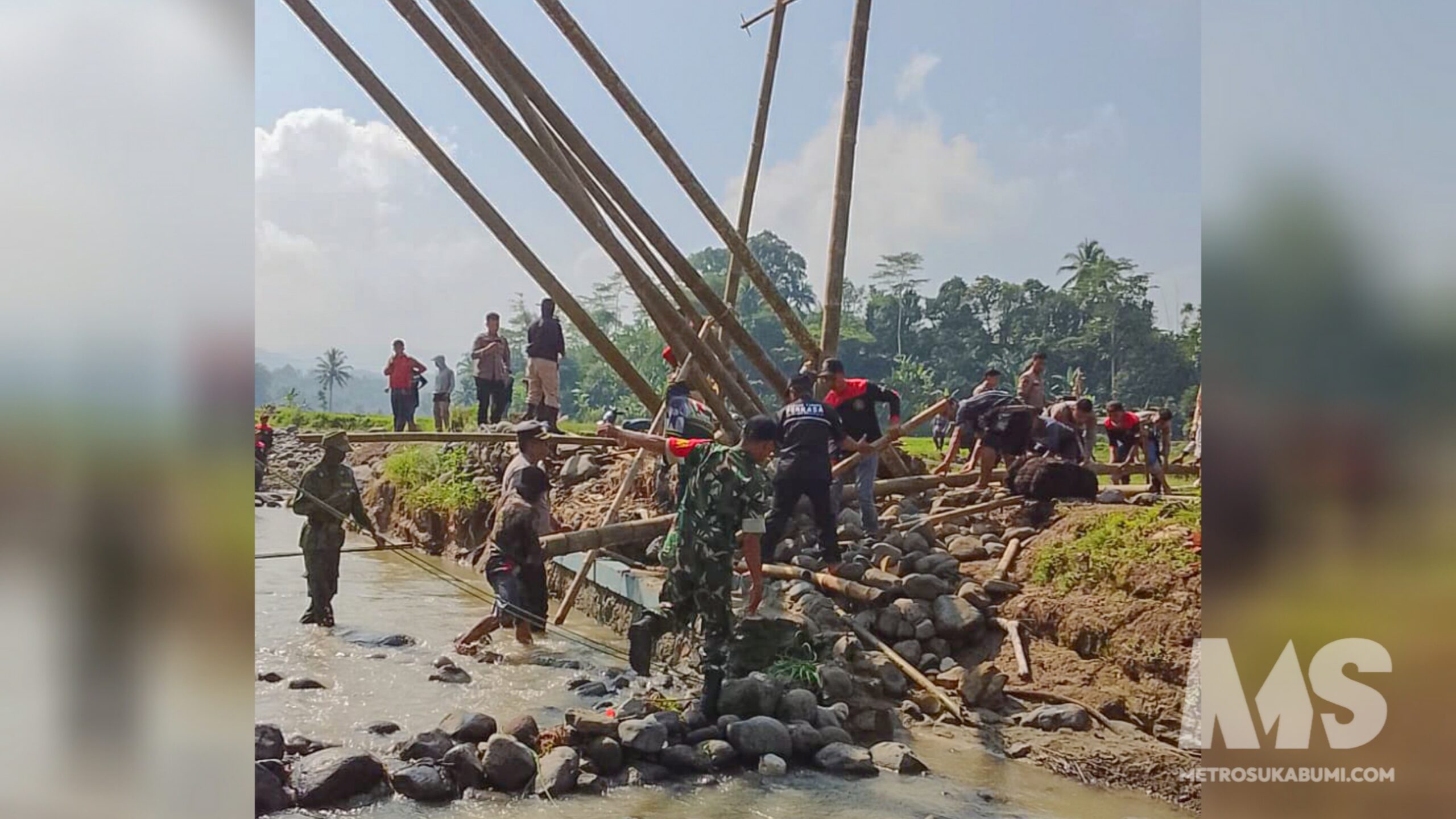 METROSUKABUMI.com – Banjir bandang yang menerjang Desa Bojongsari, Kecamatan Nyalindung, benar-benar melumpuhkan akses warga. Jembatan di Kampung Cipiit hilang tersapu arus deras. Namun, di tengah keterbatasan, warga memilih bangkit.