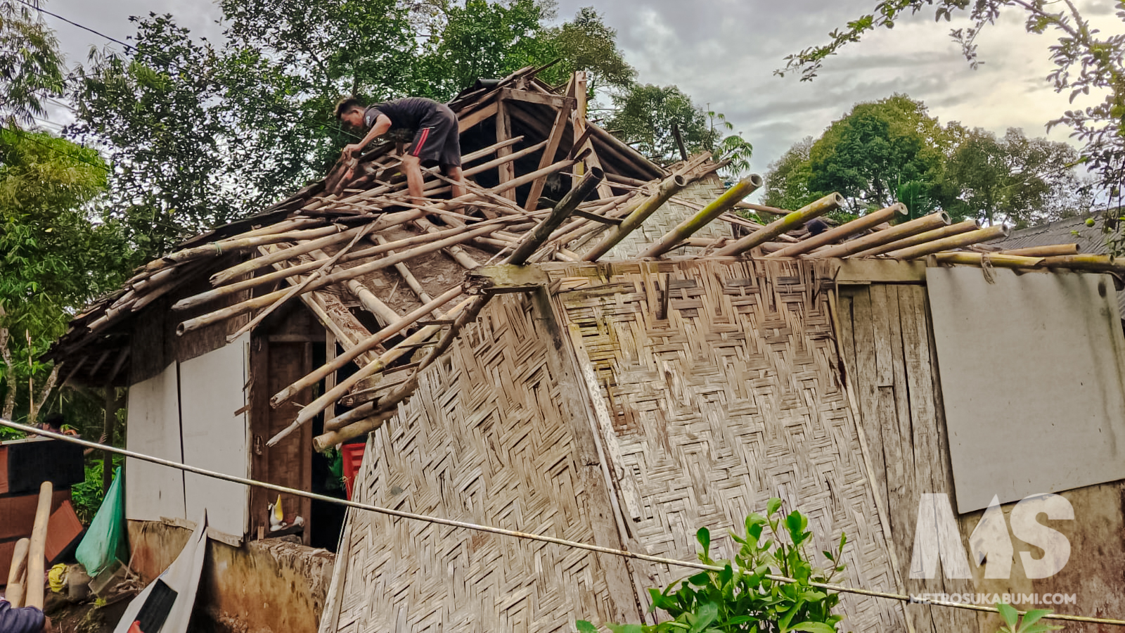 Peristiwa terjadi sekitar pukul 23.20 WIB saat hujan turun cukup lama disertai angin. Rumah milik Deden, yang dihuni 1 kepala keluarga dengan 6 jiwa, mengalami kerusakan berat setelah bagian atap dapur roboh.