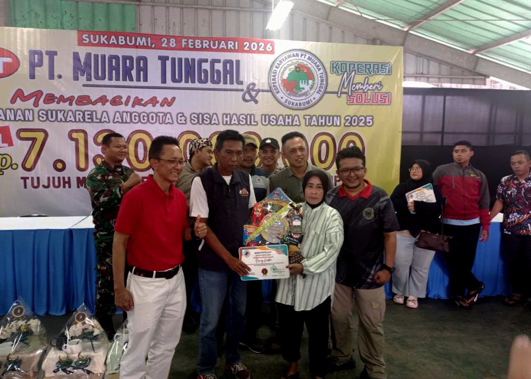 SUKABUMI – Koperasi Karyawan PT Muara Tunggal kembali menunjukkan taringnya. Tahun Buku 2025, koperasi ini membagikan Simpanan Sukarela Anggota dan Sisa Hasil Usaha (SHU) dengan total nilai Rp7,13 miliar kepada 2.800 anggota, Sabtu (28/2).