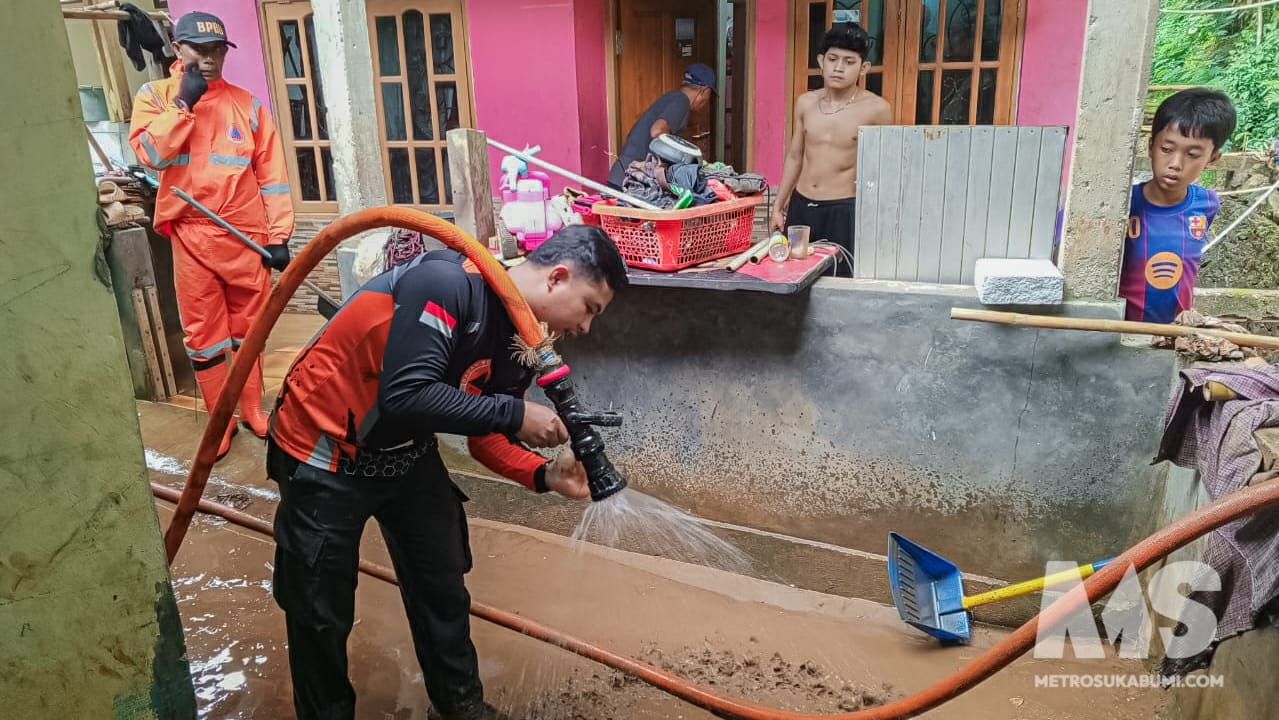 Tim dari BPBD Kabupaten Sukabumi langsung turun tangan melakukan penanganan pasca banjir sejak pukul 15.00 WIB hingga 20.30 WIB. Sejumlah personel diterjunkan untuk membantu pembersihan material lumpur dan tanah yang terbawa arus.