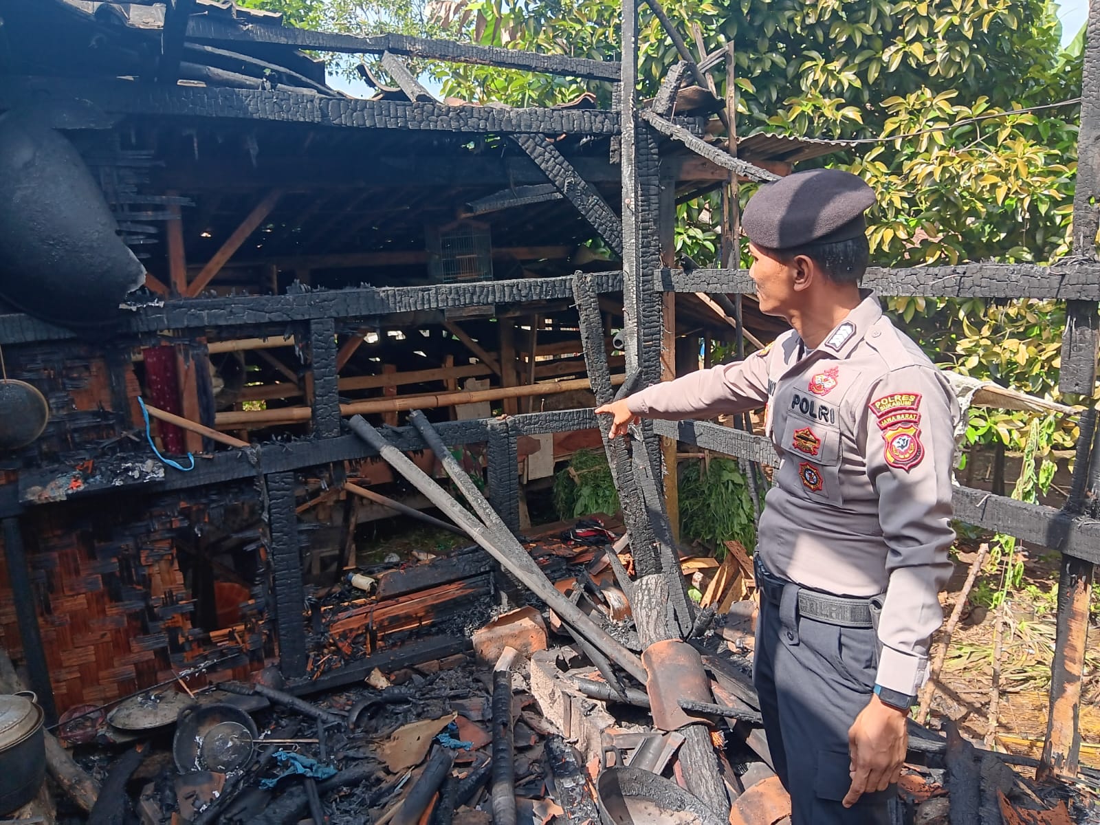 “Anggota piket Polsek Cikembar langsung mendatangi lokasi kejadian setelah menerima laporan dan segera mengamankan area sekitar kebakaran agar warga tidak terlalu dekat dengan sumber api,” ujar IPTU Yadi Suryadi.