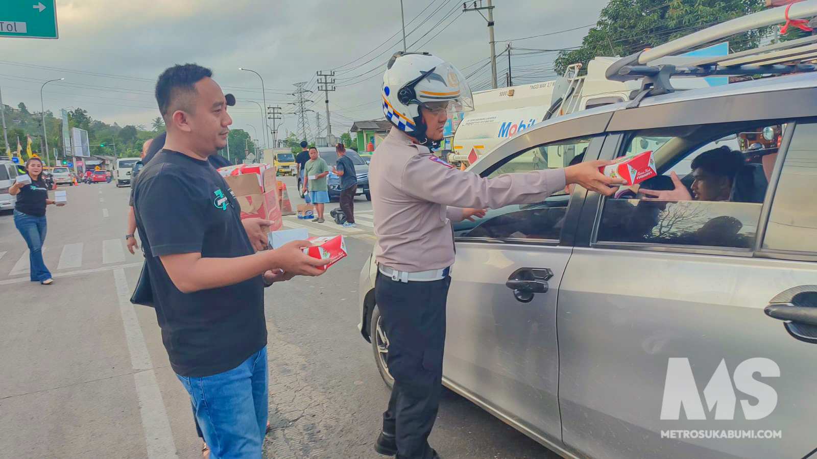 SUKABUMI – Senja Ramadan di sekitar traffic light exit Tol Parungkuda, Jalan Raya Siliwangi, Kabupaten Sukabumi, Sabtu (14/3/2026), tampak berbeda. Puluhan anggota Komunitas Driver BassBoss turun langsung ke jalan membagikan 1.000 kotak takjil kepada para pengendara yang melintas.