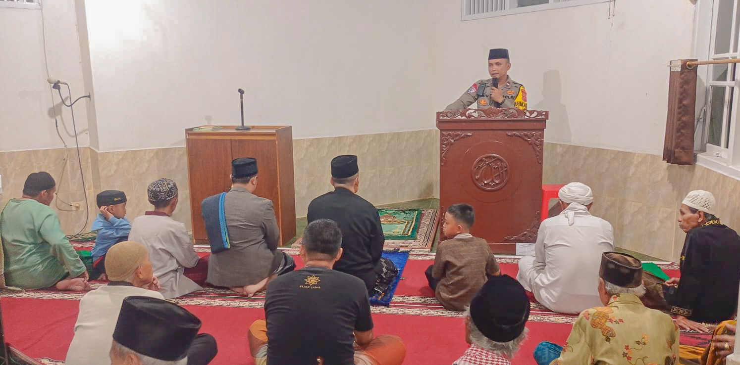SUKABUMI – Suasana Ramadan di Masjid Al Hikmah, Kampung Bojong Sentra RW 001, Kelurahan Cibadak, Sabtu (21/2) malam, terasa hangat. Lantunan ayat suci menggema, jamaah memadati saf salat tarawih. Namun, di sela kegiatan ibadah itu, ada pesan tegas yang disampaikan jajaran Polsek Cibadak.