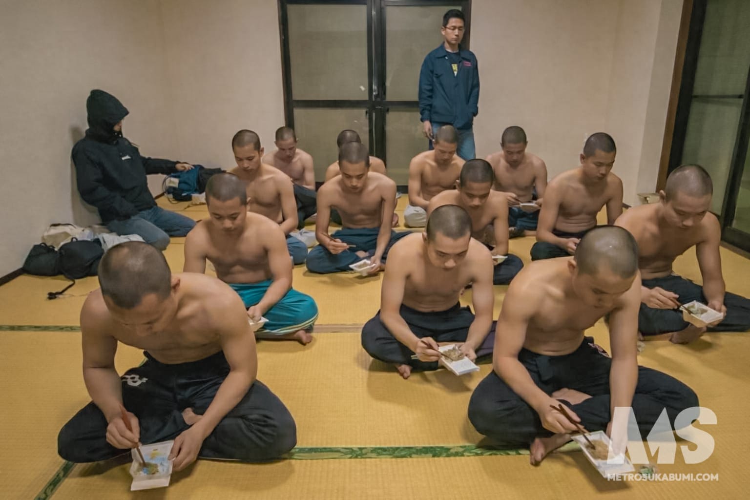 Dalam video yang beredar, tampak sejumlah pria duduk bersila di atas lantai tatami dengan kepala telah dicukur botak. Mereka diduga merupakan PMI yang baru tiba. Suasana terlihat tegang. Terdengar suara yang diduga senior atau pihak pembimbing memberikan instruksi dengan nada keras.